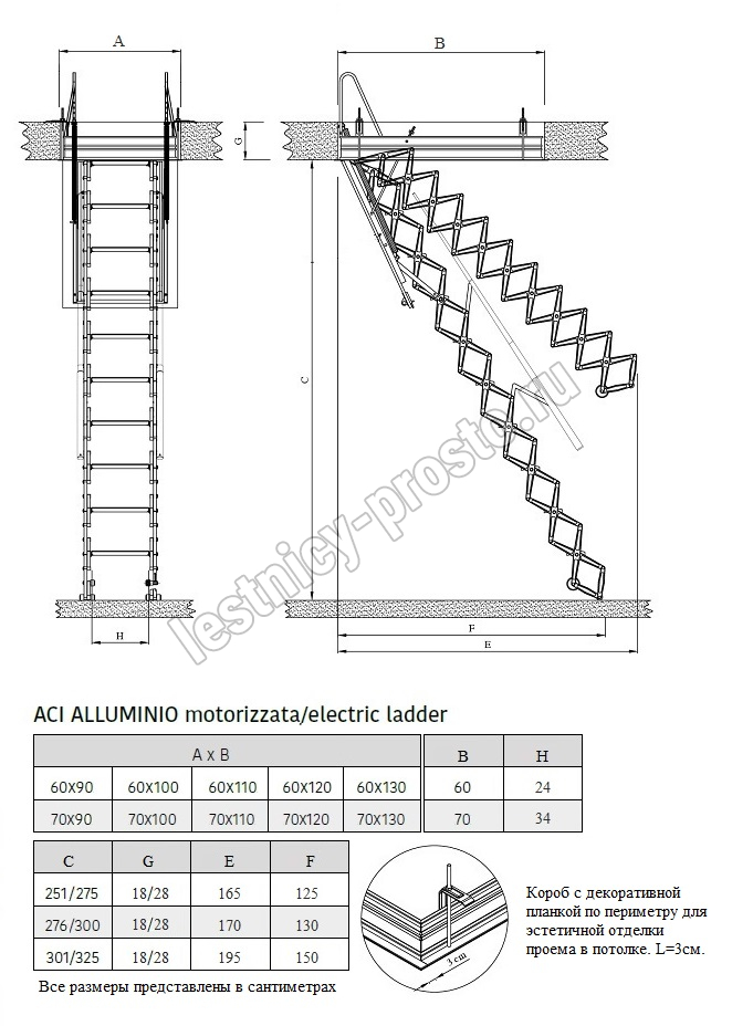 Чердачная лестница с электроприводом. Fantozziscale Motor Base 70×130 см