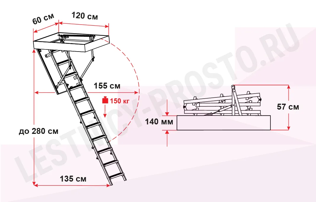 Модель STALLUX идеально подходит для условий, когда чердак утеплен и не требует дополнительной теплоизоляции. Направляющие изготовлены из стали, а ступени - из сосны. Термоизоляционная крышка типа "сэндвич", толщиной 30 мм, утеплена пенопластом, облицована с двух сторон ДВП белого цвета.