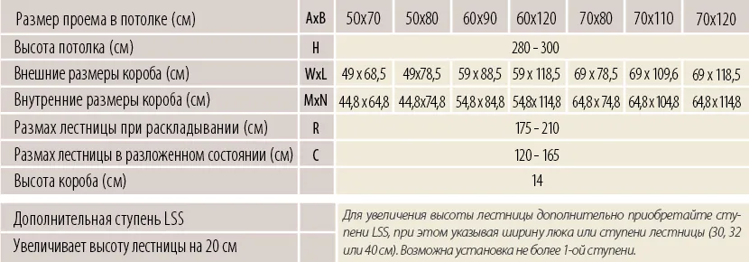 при этом указывая ширину люка или ступени лестницы (30, 32 или 40 см). Возможна установка не более одной ступени. Монтажный комплект LXK поставляется в комплекте с лестницей.