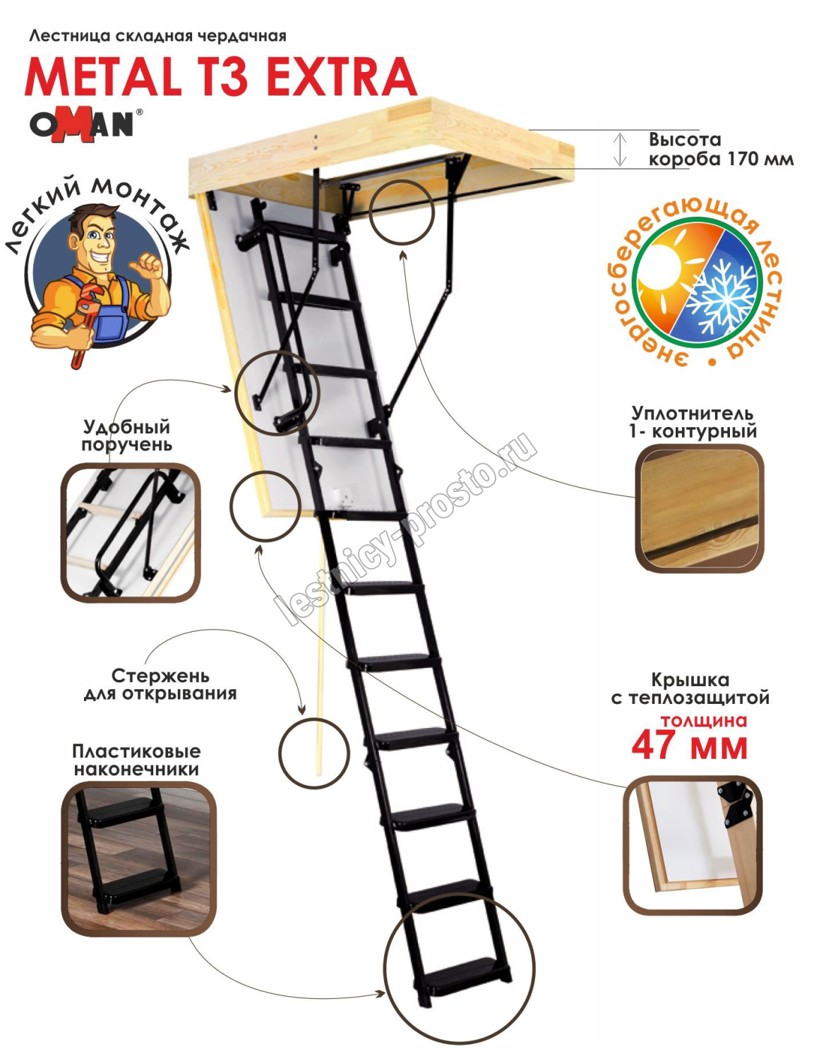 Лестница OMAN Metal T3 EXTRA 60×120 см, h-280 см