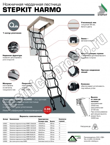 Ножничная чердачная лестница HARMO 80х60х310