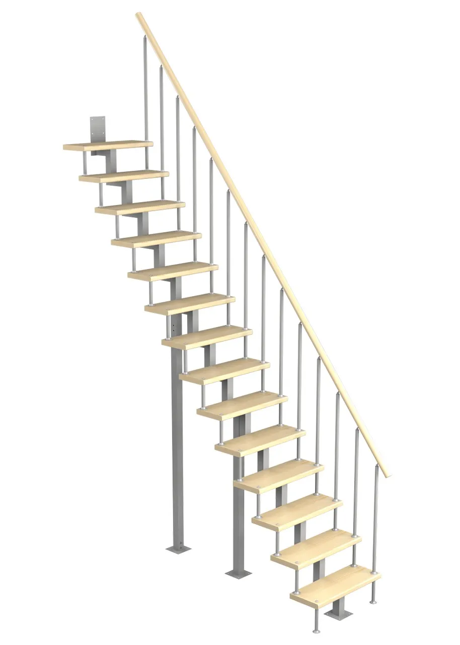 Легкая для монтажа и доработок по высоте: можно добавить подиум или легко обрезать по высоте. Практичная и компактная – удобно наступать так, как все ступени открыты. Угол подъема составляет 34 градуса. Монтаж осуществляется силами двух человек на объекте по указаниям, приведенным в паспорте на лестницу.