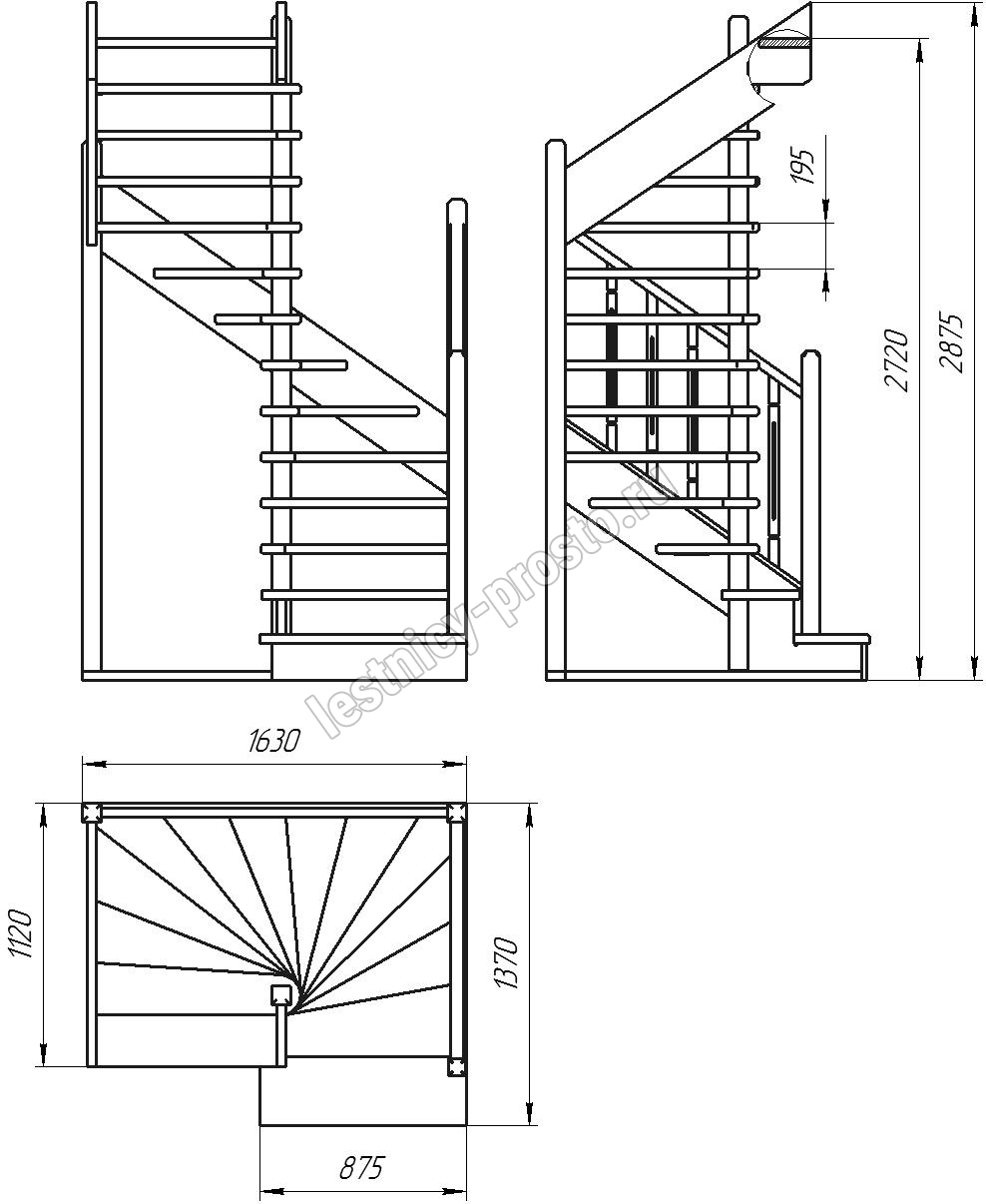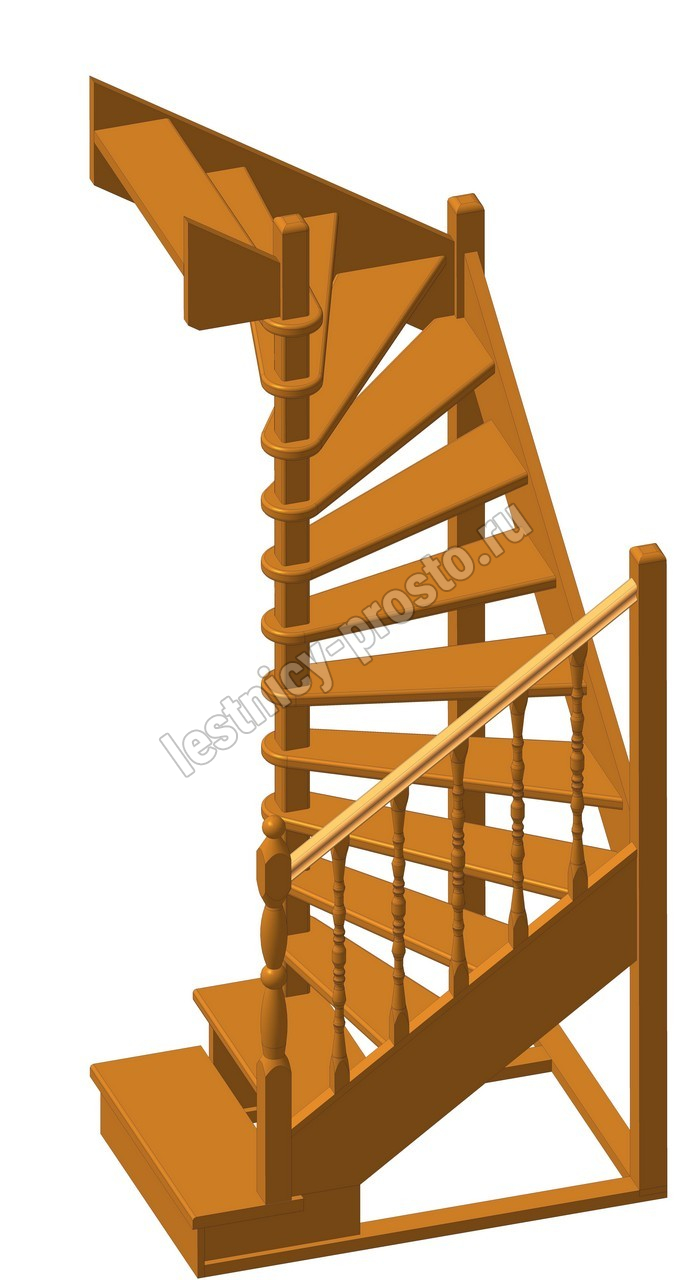 Деревянная межэтажная лестница ЛЕС-03 2720-2920 проем 1630-1120, Бук