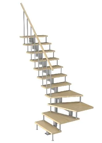 Универсальная лестница, имеющая в основе своей конструкции наклонную опорную балку. Легко впишется в любой интерьер, даже на неровном полу. Место под площадкой можно закрыть и использовать для хранения различных предметов. Монтаж осуществляется силами двух человек на объекте по указаниям, приведенным в паспорте на лестницу.