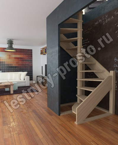Деревянная межэтажная лестница ЛЕС-1,2ВУ, Бук