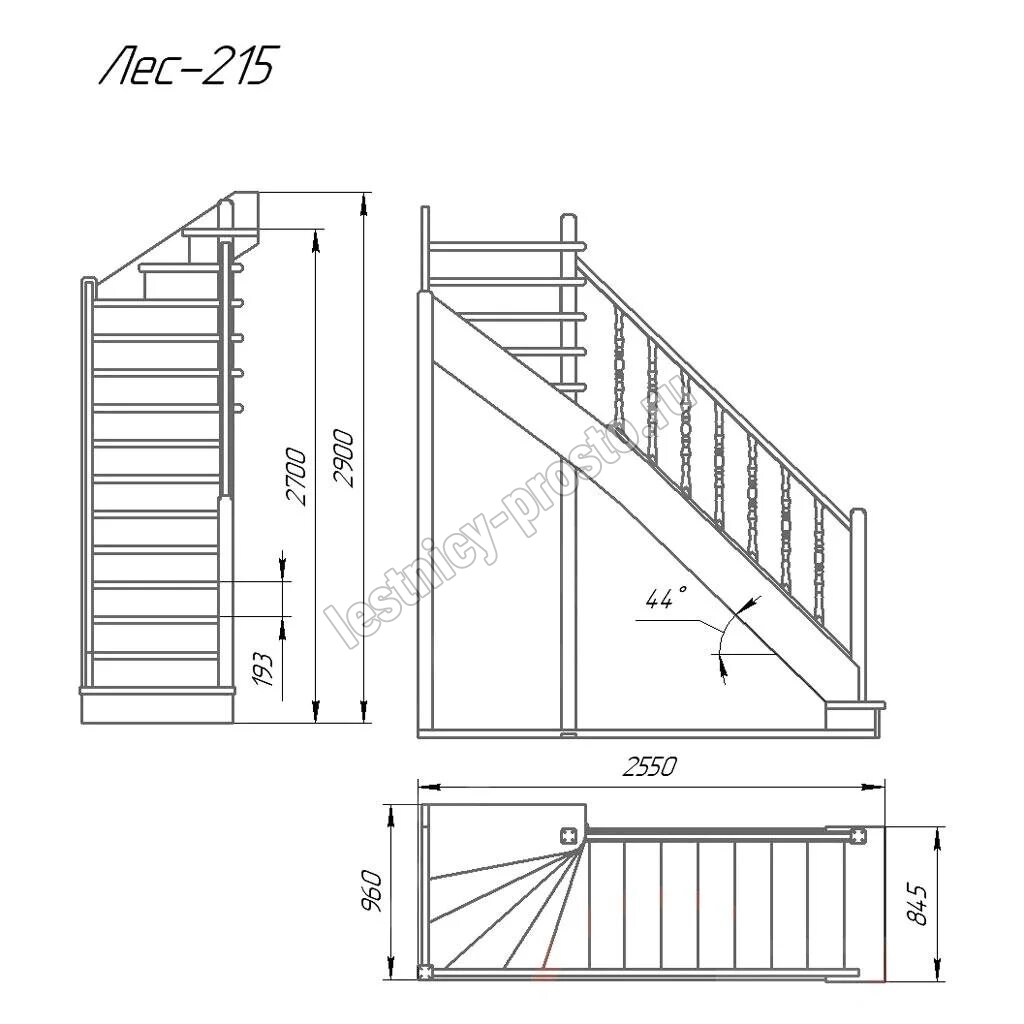 Деревянная межэтажная лестница ЛЕС-215, Лиственница