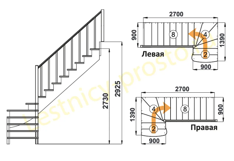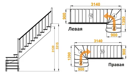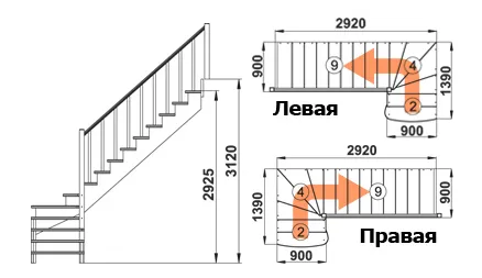 | Лестница из сосны К-001м/1 под покраску с подступёнками |