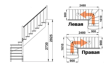 | Лестница из сосны К-001М/2 под покраску с подступёнками |