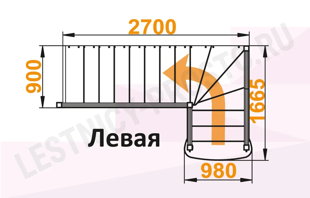Лестница К-021М с поворотом налево