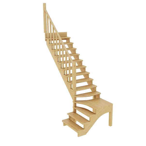 Базовый комплект включает в себя деревянные элементы лестницы и ограждения без какого-либо покрытия.