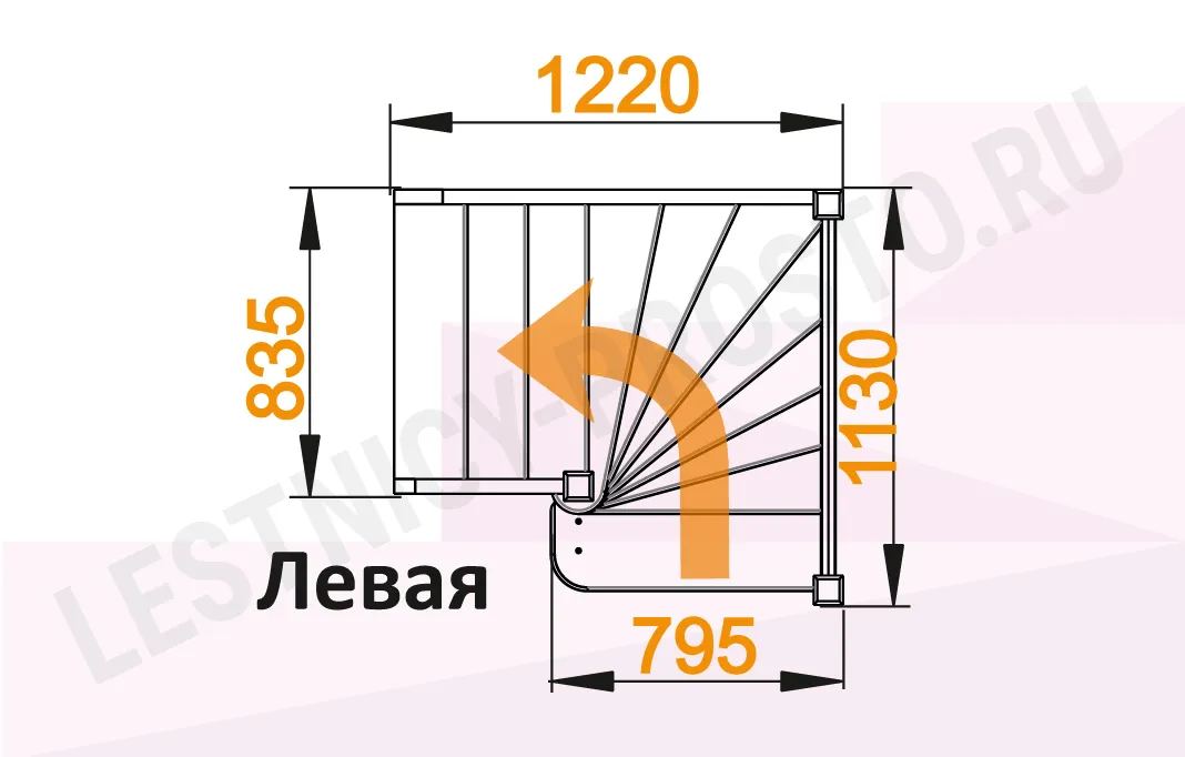 Схема лестницы ЛС-91М с поворотом налево