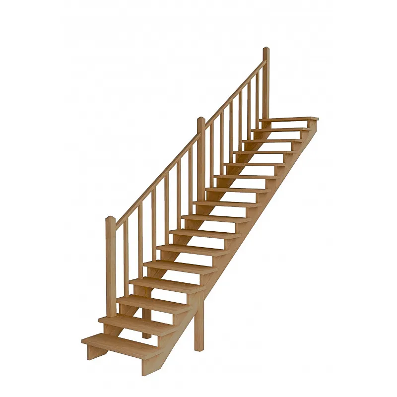 Базовый комплект включает в себя деревянные элементы лестницы и ограждения без какого-либо покрытия.