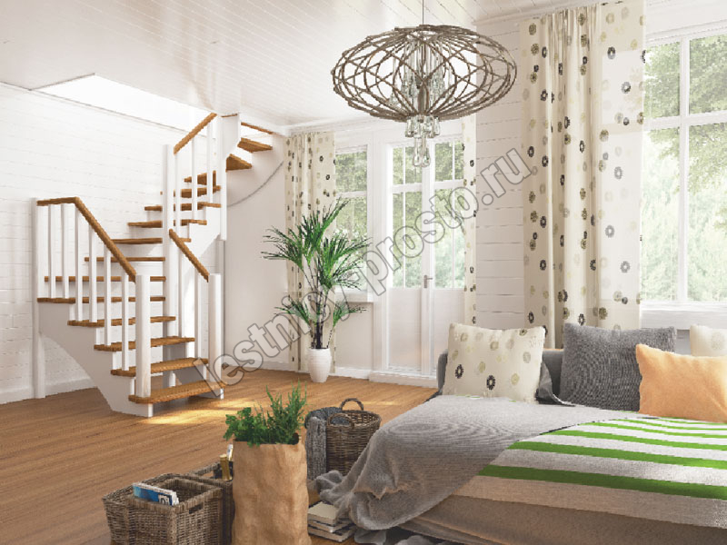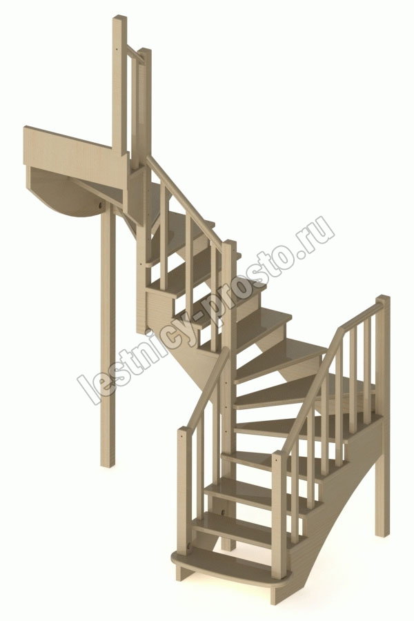 Ступени и поручень лестницы выполнены из дуба, остальные элементы из сосны. Возможно изготовление данной модели полностью из дуба.