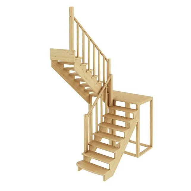 Базовый комплект включает в себя деревянные элементы лестницы и ограждения без какого-либо покрытия.