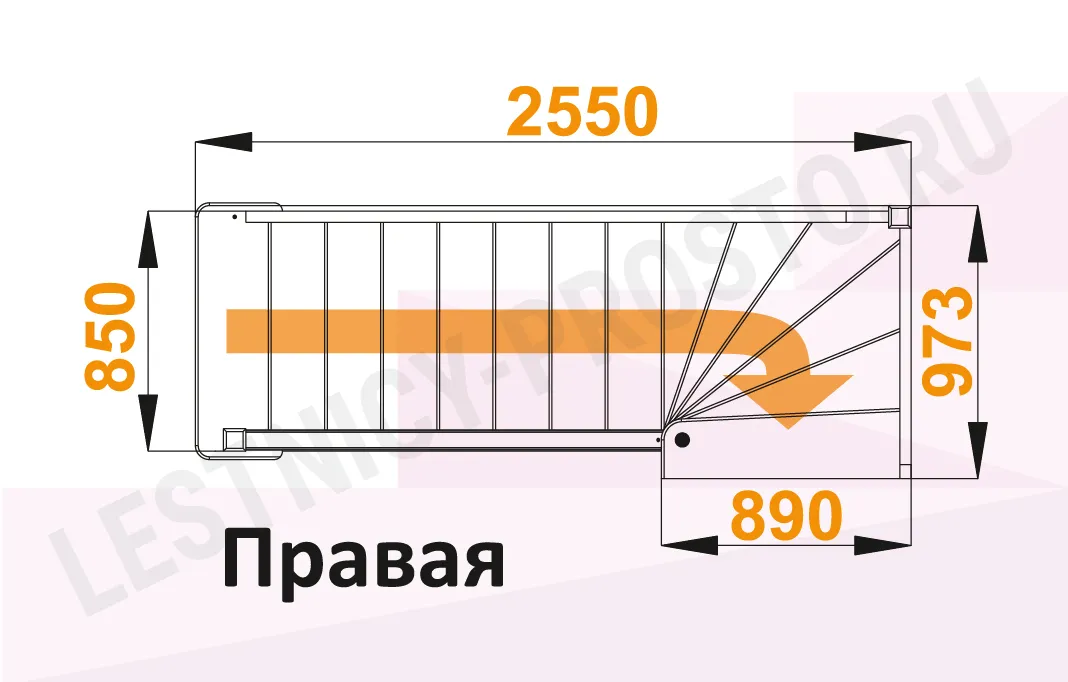 Лестница ЛС-215М с поворотом направо