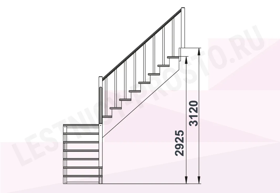 Базовый комплект включает в себя деревянные элементы лестницы и ограждения без какого-либо покрытия.