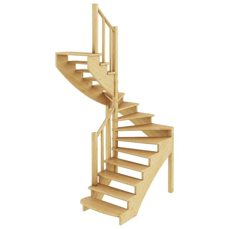 Базовый комплект включает в себя деревянные элементы лестницы и ограждения без какого-либо покрытия.