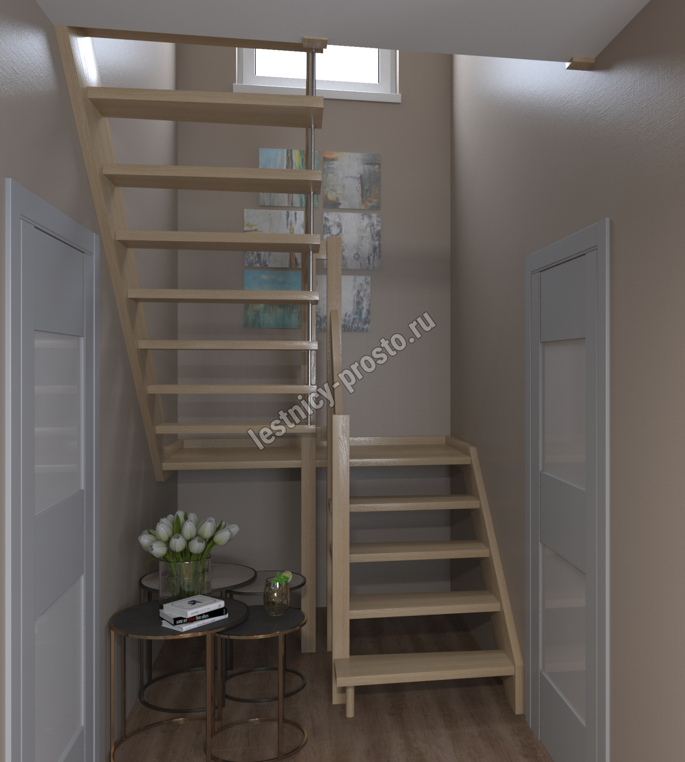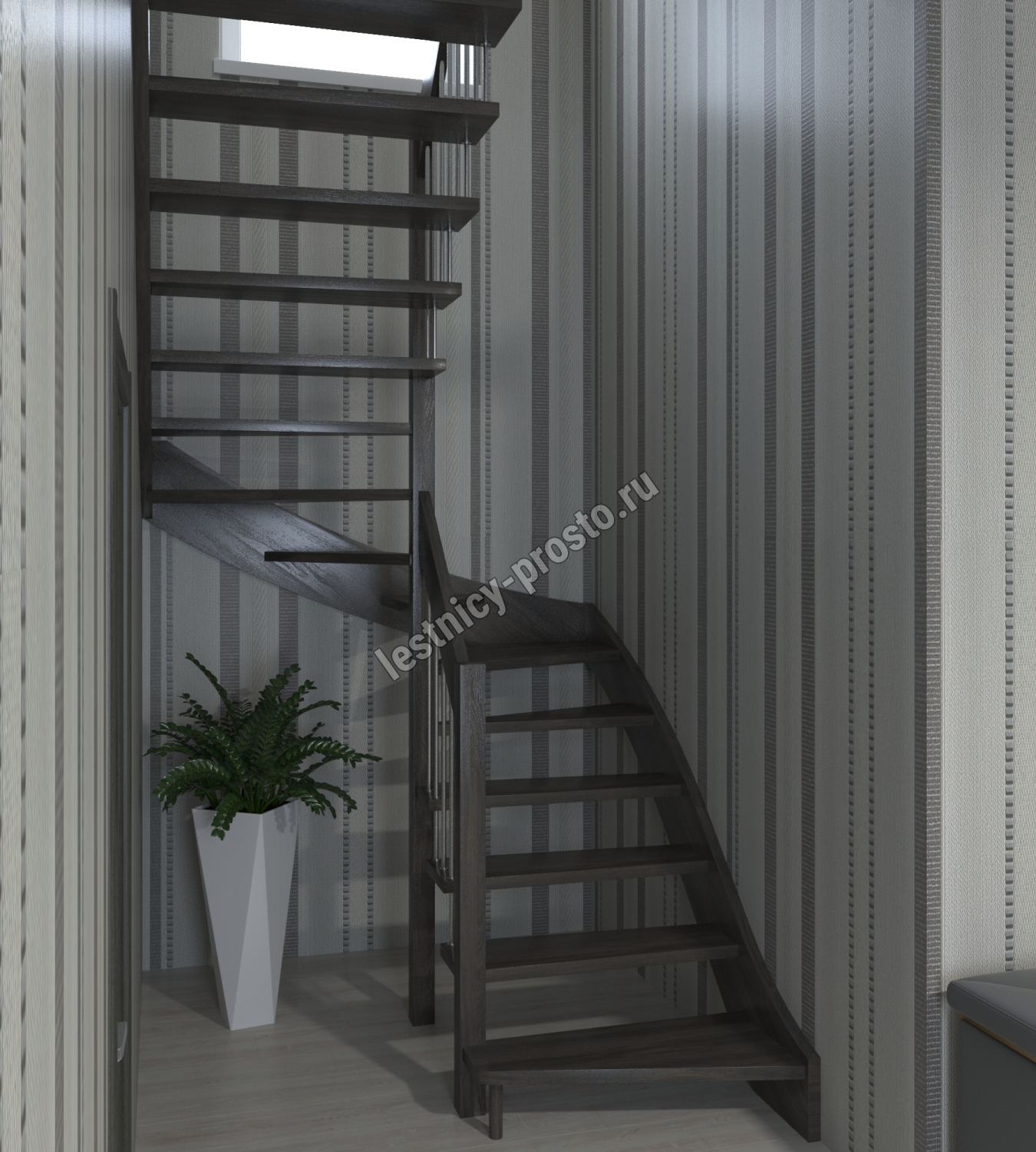 Лестница Prosto Console п-образная забежная, дуб h280 см