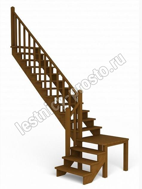 Лестница изготавливается под заказ. Возможны варианты подходящие под необходимые размеры проёма. Базовое ограждение можно заменить на кованое или точеное. Лестницу можно дополнить подступенями, бортиками, миниподступенями. Первую ступень можно заменить на пригласительную - лекальную. Классическая модель поворотной лестницы раскрывает всю природную красоту натуральных материалов. У лестницы комфортная высота шага, удобный широкий марш и угол подъема. Указана стоимость лестницы без какого-либо покрытия.