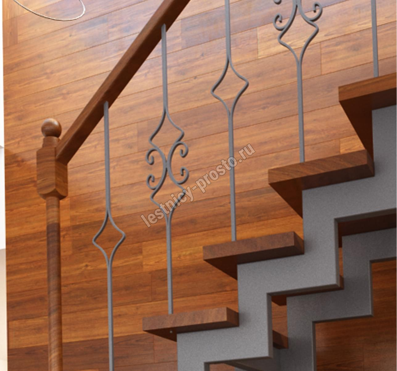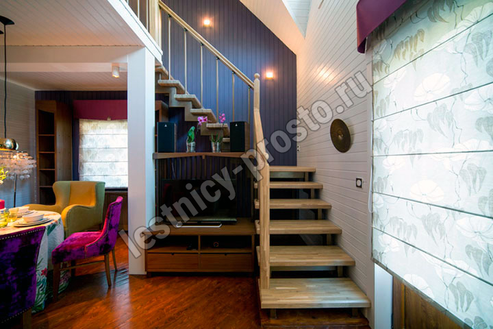 У данного варианта лестницы поворот реализован через забежные ступени. Под заказ возможно изготовление каркаса под поворотную площадку.