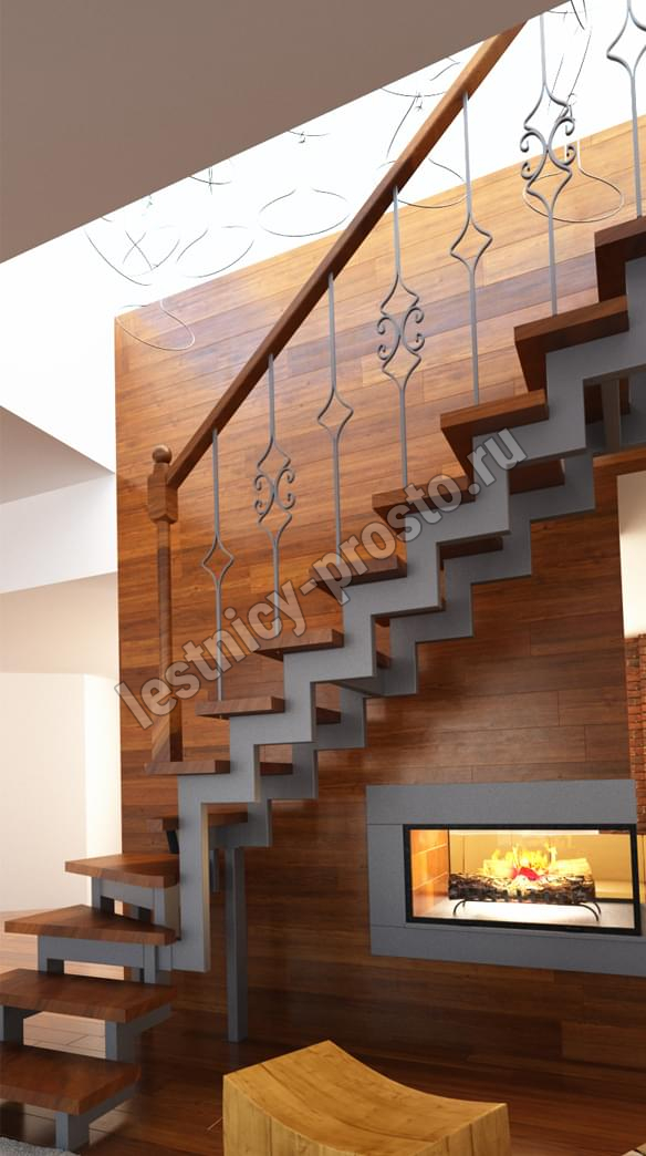 У данного варианта лестницы ступени изготовлены из сращенной лиственницы категории АВ без какого-либо покрытия.