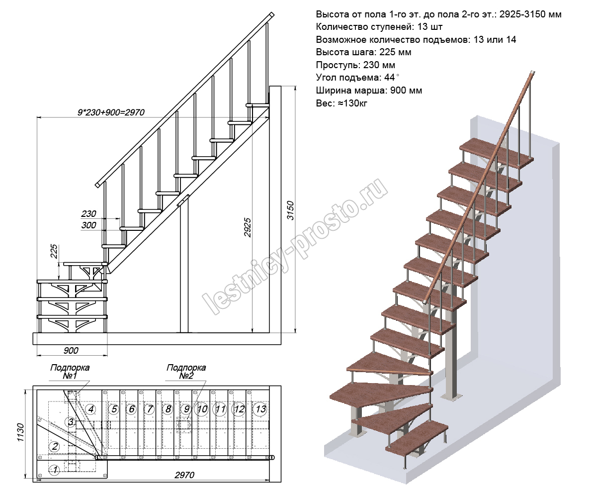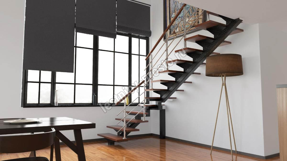 Лестница PROSTO MONO Г-образная h315 см, ступени лиственница