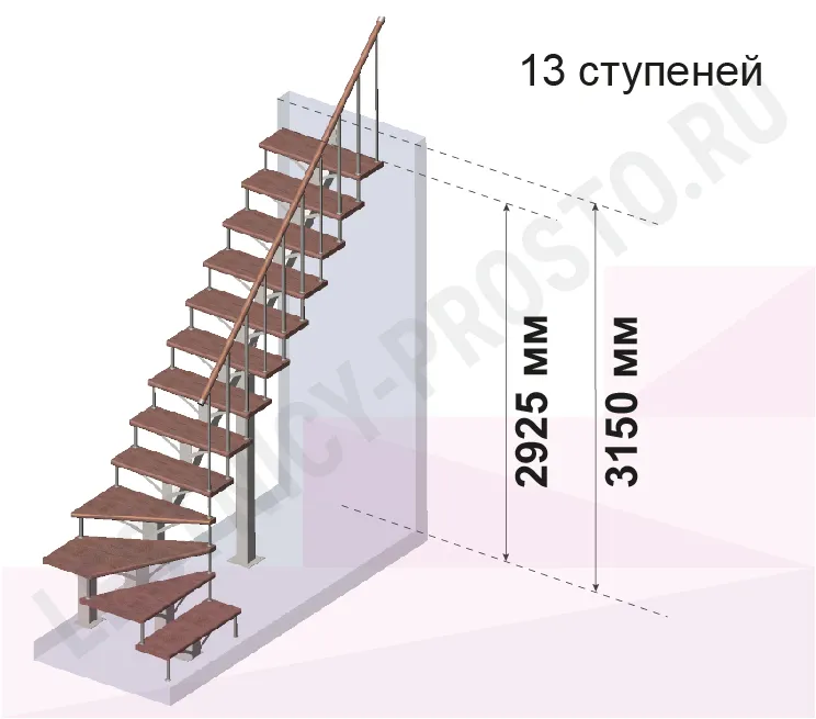 Лестница PROSTO MONO Г-образная h315 см, ступени хвоя