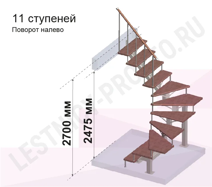 Высота лестницы 2475 - 2700 (11 ступеней) мм