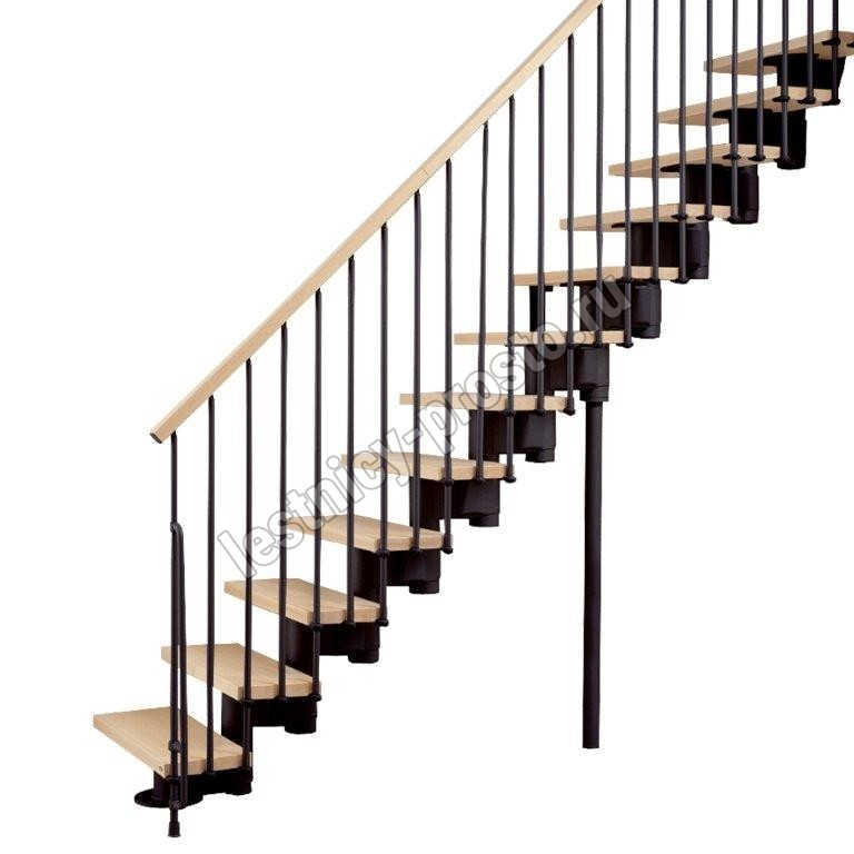 Лестница на стальном модульном каркасе. При монтаже этой лестницы, возможно регулировать высоту и глубину шага, таким образом можно получить лестницу под высоты этажа в диапазоне 2250 - 3030 мм.