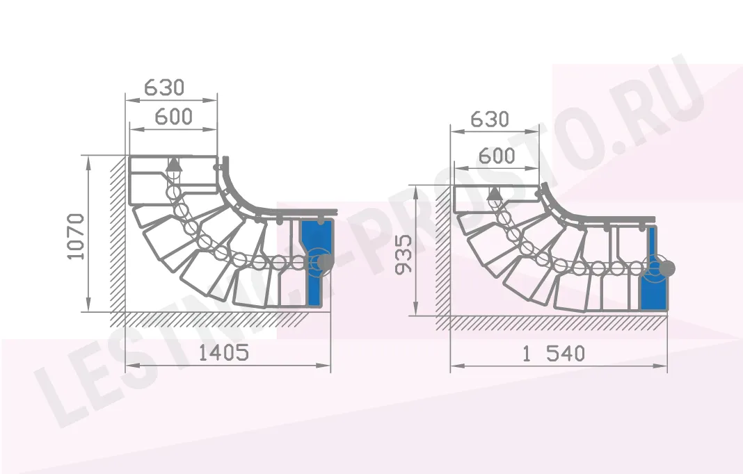 Модульная конструкция позволяет собрать лестницу наилучшим образом подходящую по форме вашему помещению, как прямую, так и L-формы, U-формы.