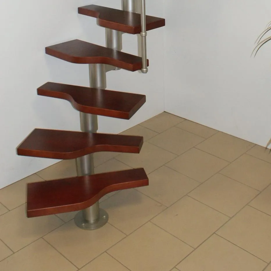 При монтаже этой лестницы, возможно регулировать высоту и глубину шага, таким образом можно получить лестницу под высоты этажа в диапазоне 2220 - 3000 мм. Ступени лестницы выполнены из сращенной ольхи и тонированы защитным лаком.