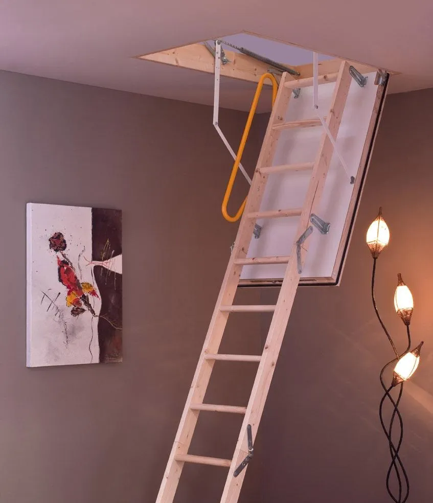 - Возможность устанавливать лестницу как прямую, так и с поворотом внизу или вверху; при этом нужно понимать, что поворот менее удобен, чем прямой участок лестницы.