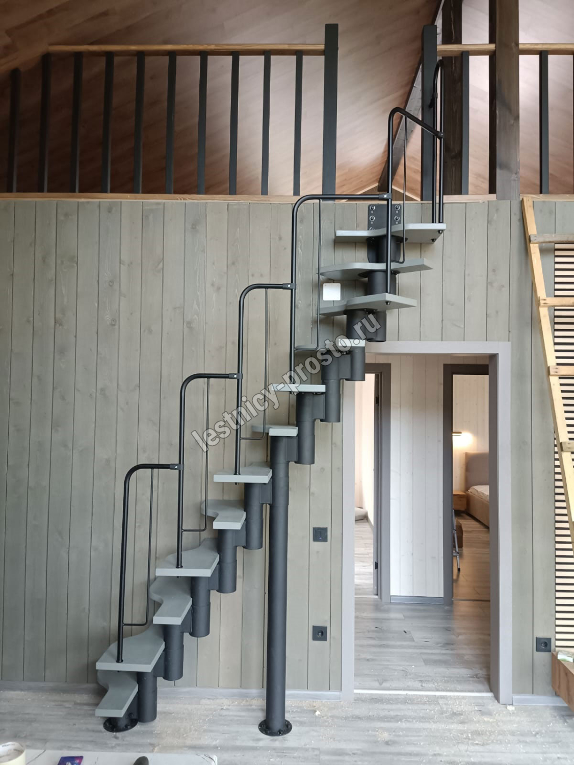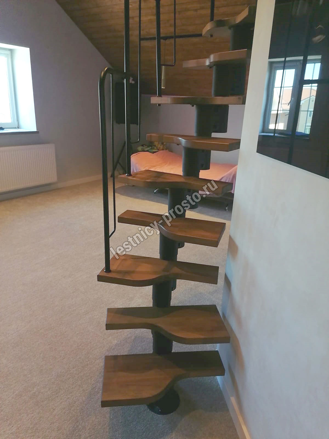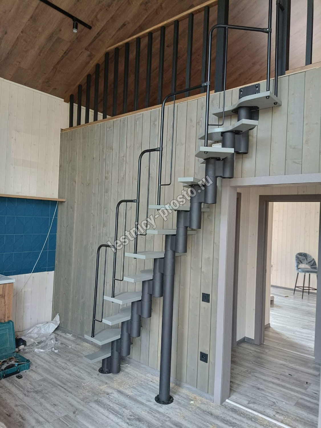 Лестница Prosto Urban Black гусиный шаг 600 мм, h180-264 см (10 ступеней), ясень