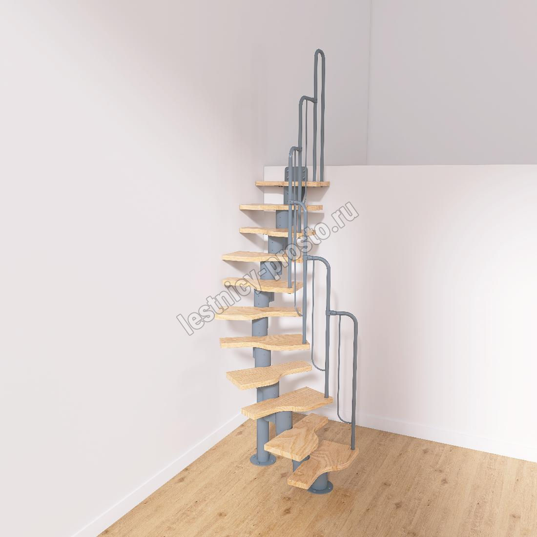 Лестница Prosto Urban Grey г-образная гусиный шаг 600 мм, h198-288 см (11 ступеней)