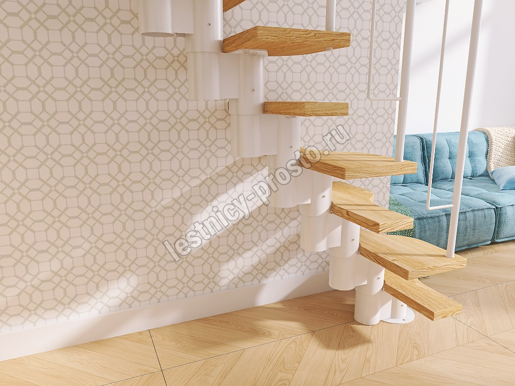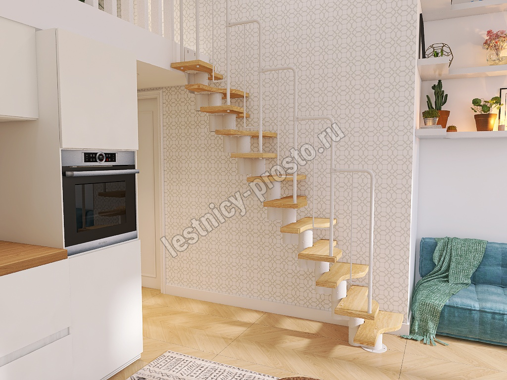 Лестница Prosto Urban White гусиный шаг 700 мм, h234-336 см (13 ступеней), ясень