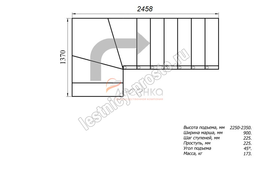Модульная лестница Фаворит 225 2250-2350, Серый, Лиственница, Нержавеющая сталь