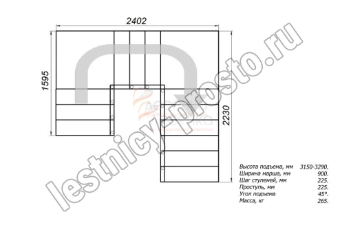 Высота лестницы 3150 - 3290 мм