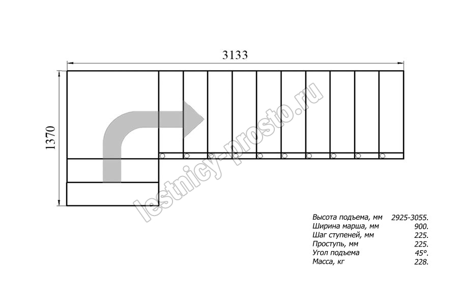 Модульная лестница Статус 225 2925-3055, Белый, Лиственница, Крашеная