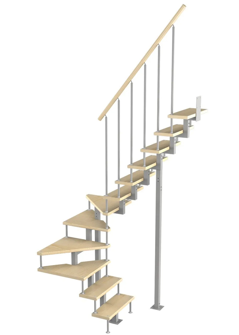 Модульная малогабаритная лестница Эксклюзив 2250-2475, Серый, Лиственница, Нержавеющая сталь