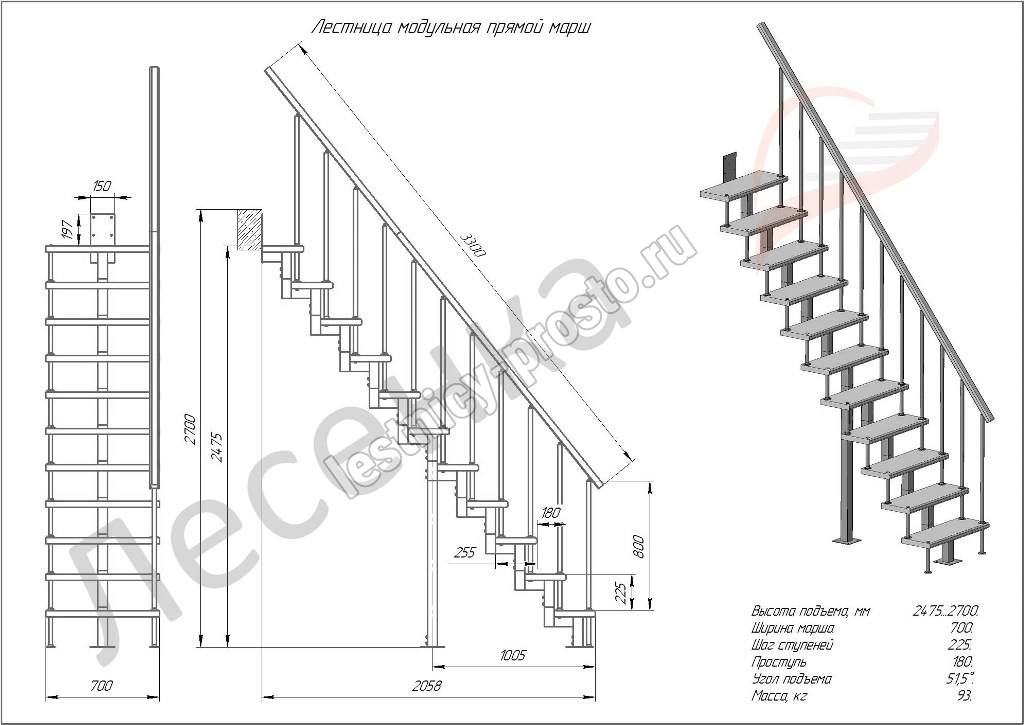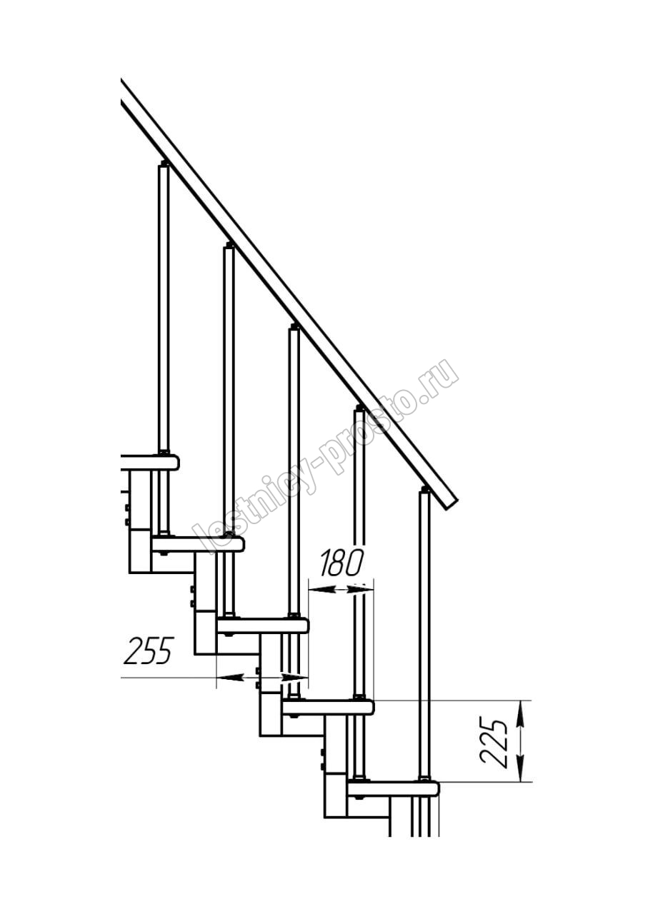 Модульная малогабаритная лестница Линия 2475-2700, Черный, Сосна, Крашеная, Без Ступений