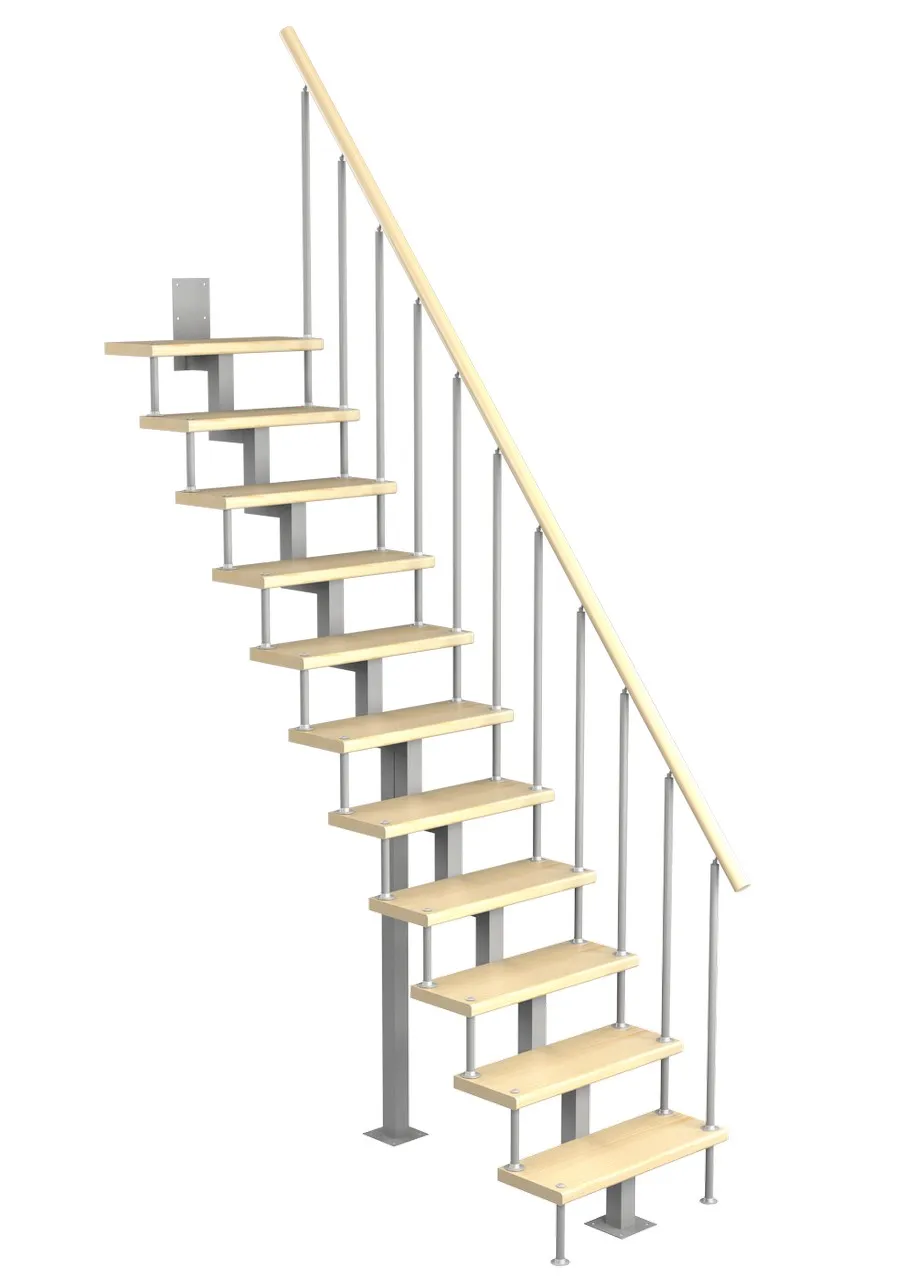 Модульная малогабаритная лестница Линия 2475-2700, Серый, Бук, Нержавеющая сталь