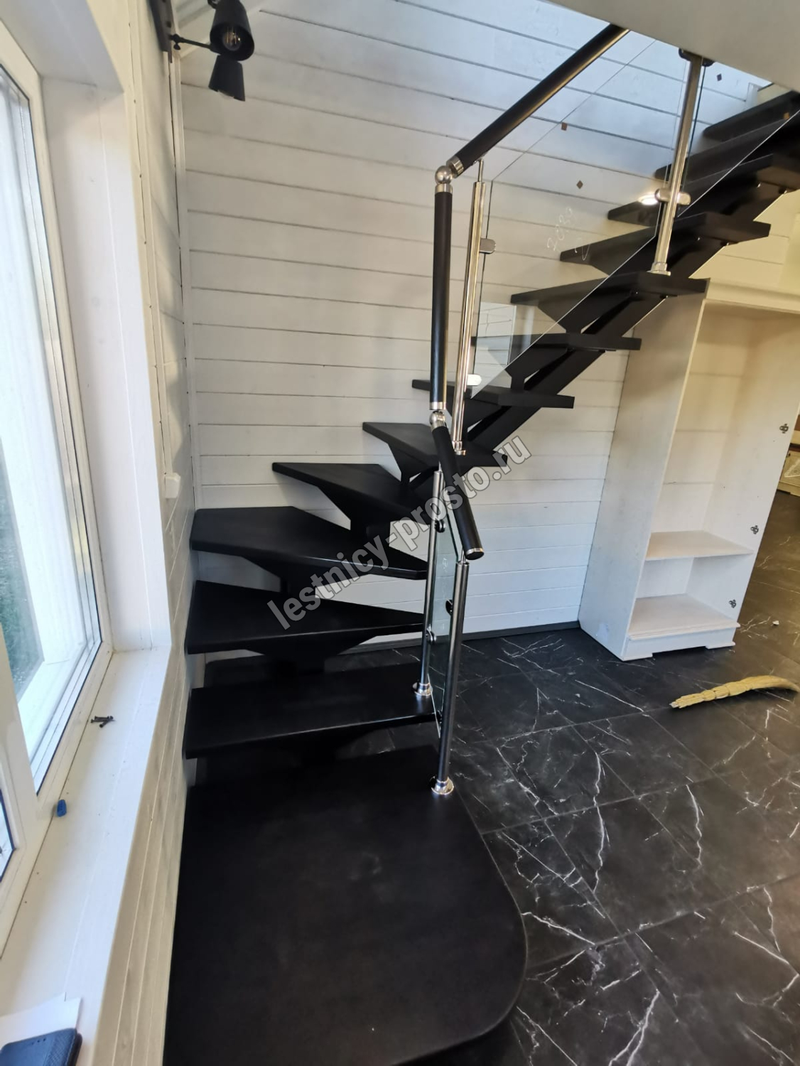 Ступени и поручень выполнены из срощенного бука.