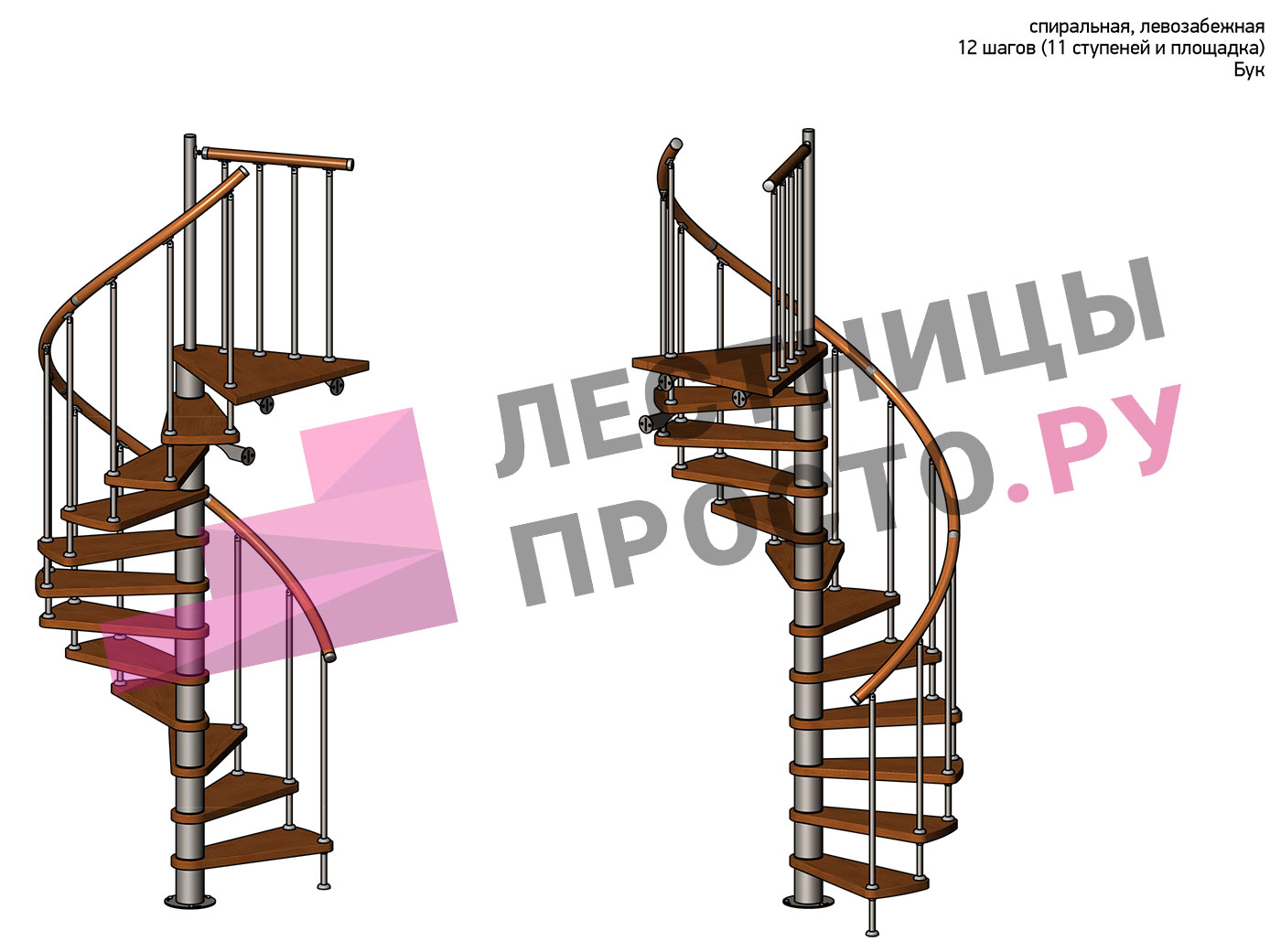 Левая, d=140см, 11 ступеней + площадка
