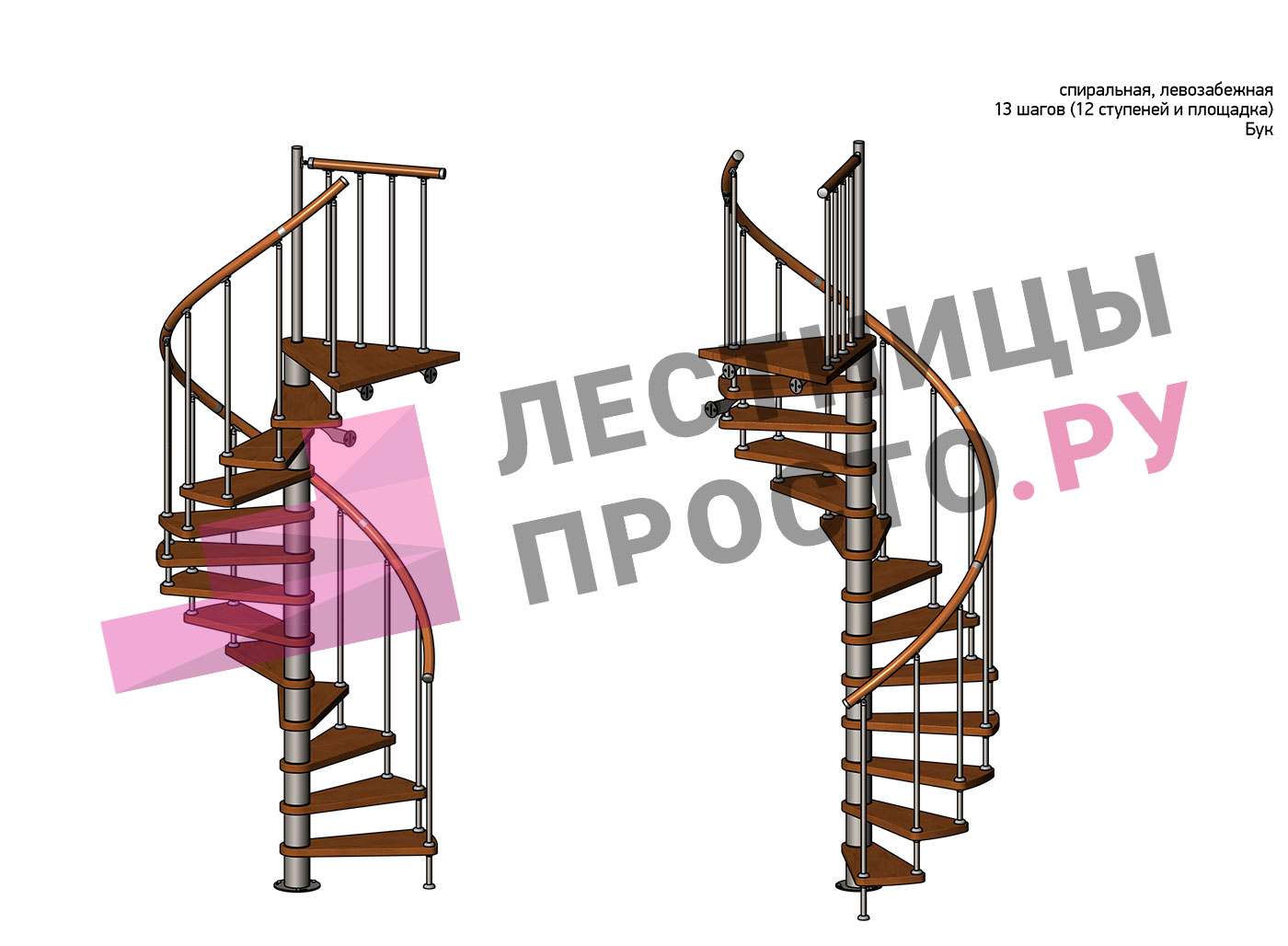Винтовая лестница Prosto Spiral White D140см, h282.2-326,3 см, бук