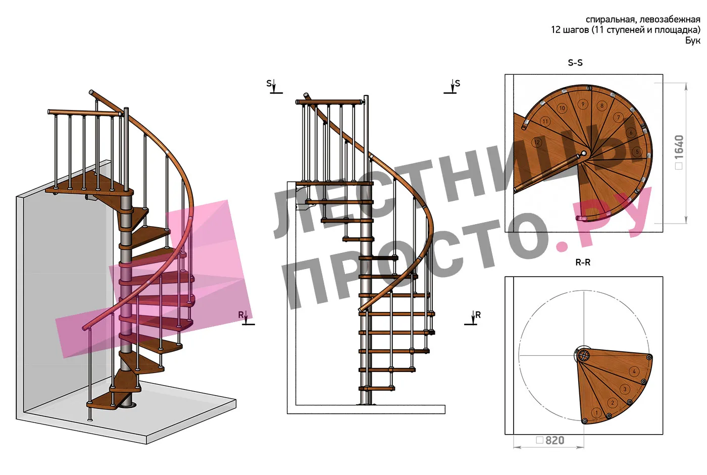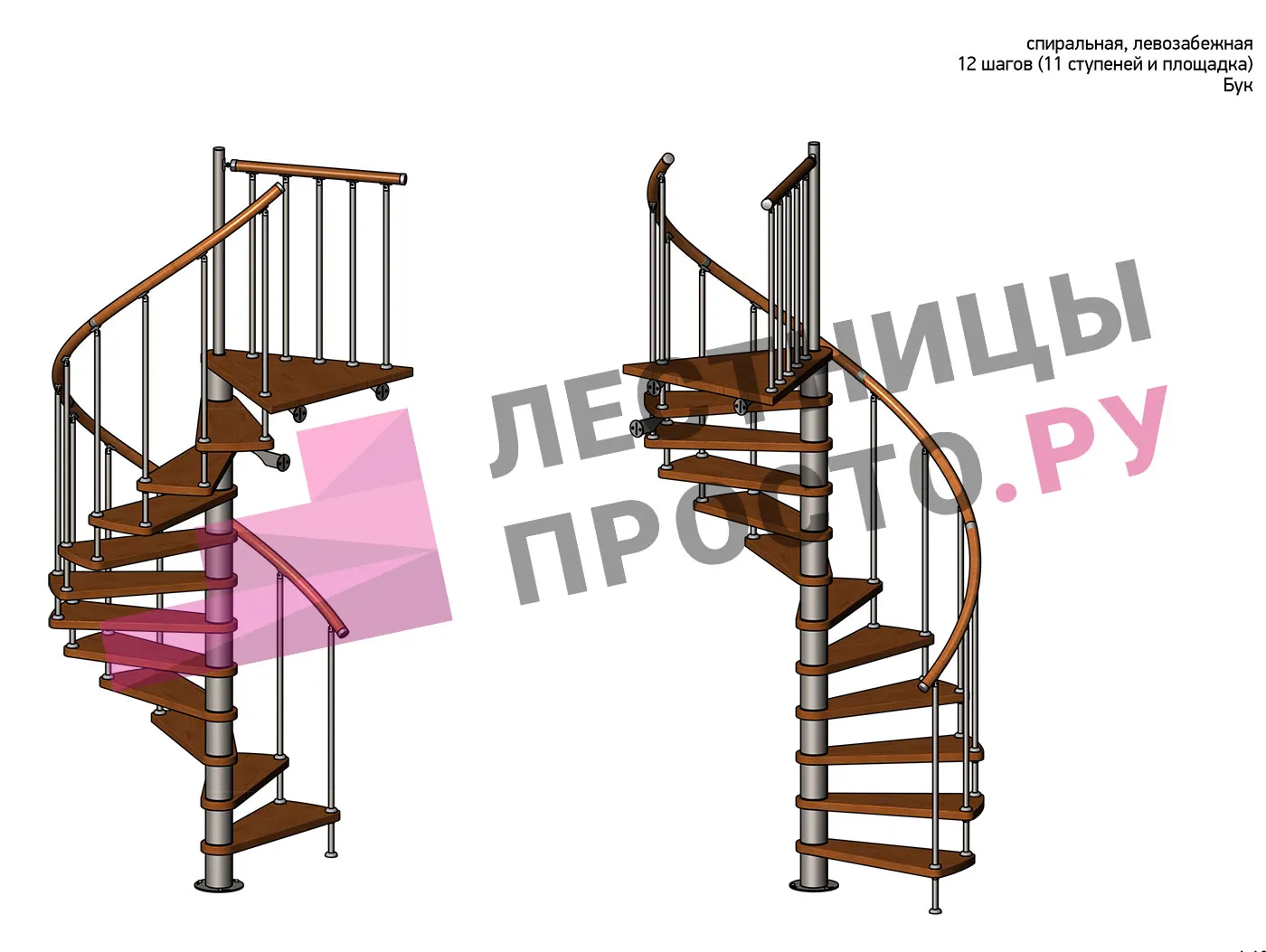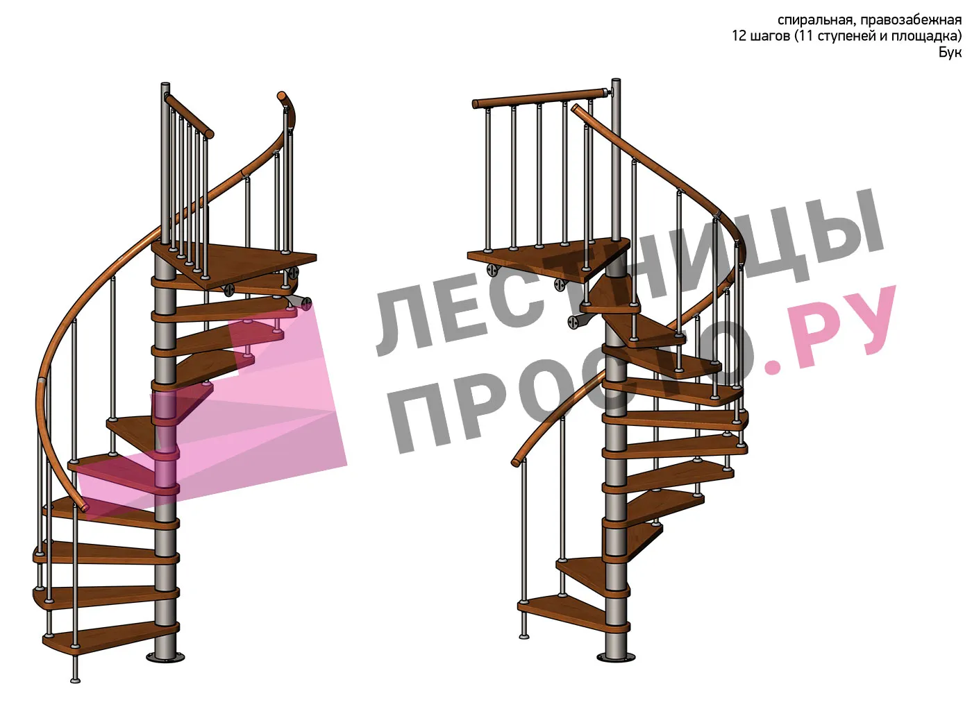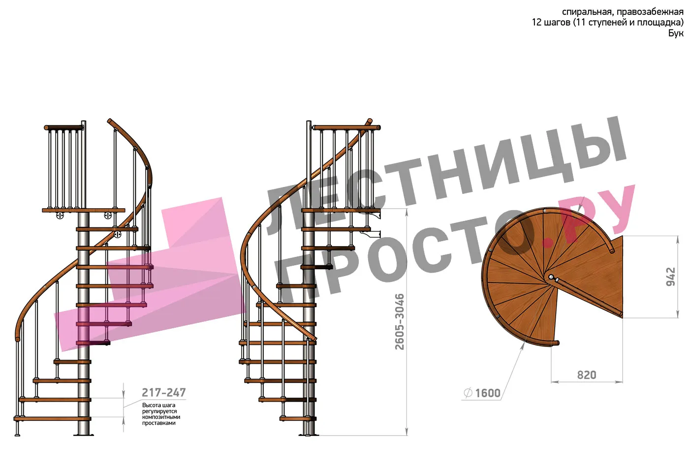 Винтовая лестница Prosto Spiral White D160см, h260.5-304.6 см, бук