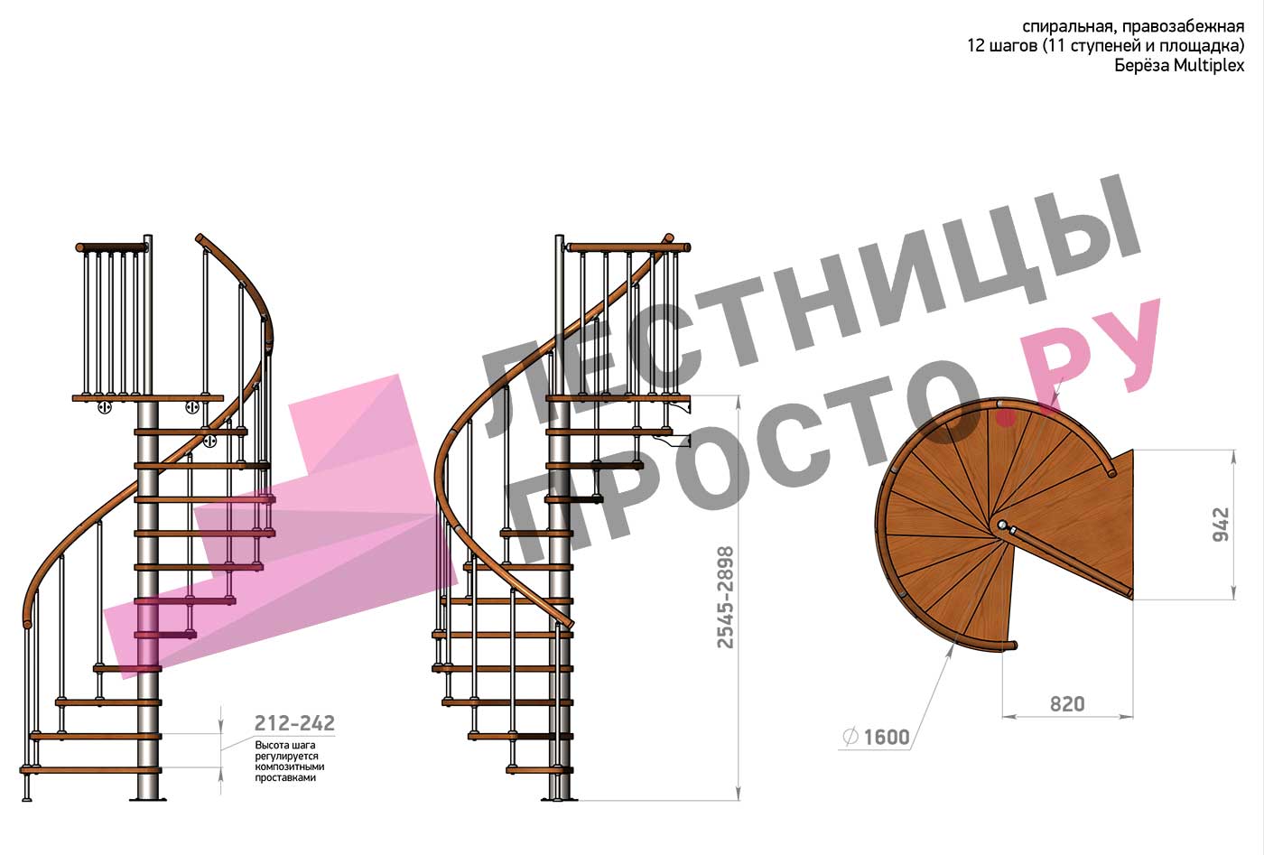 Винтовая лестница Prosto Spiral White D160см, h275.7-313.9 см