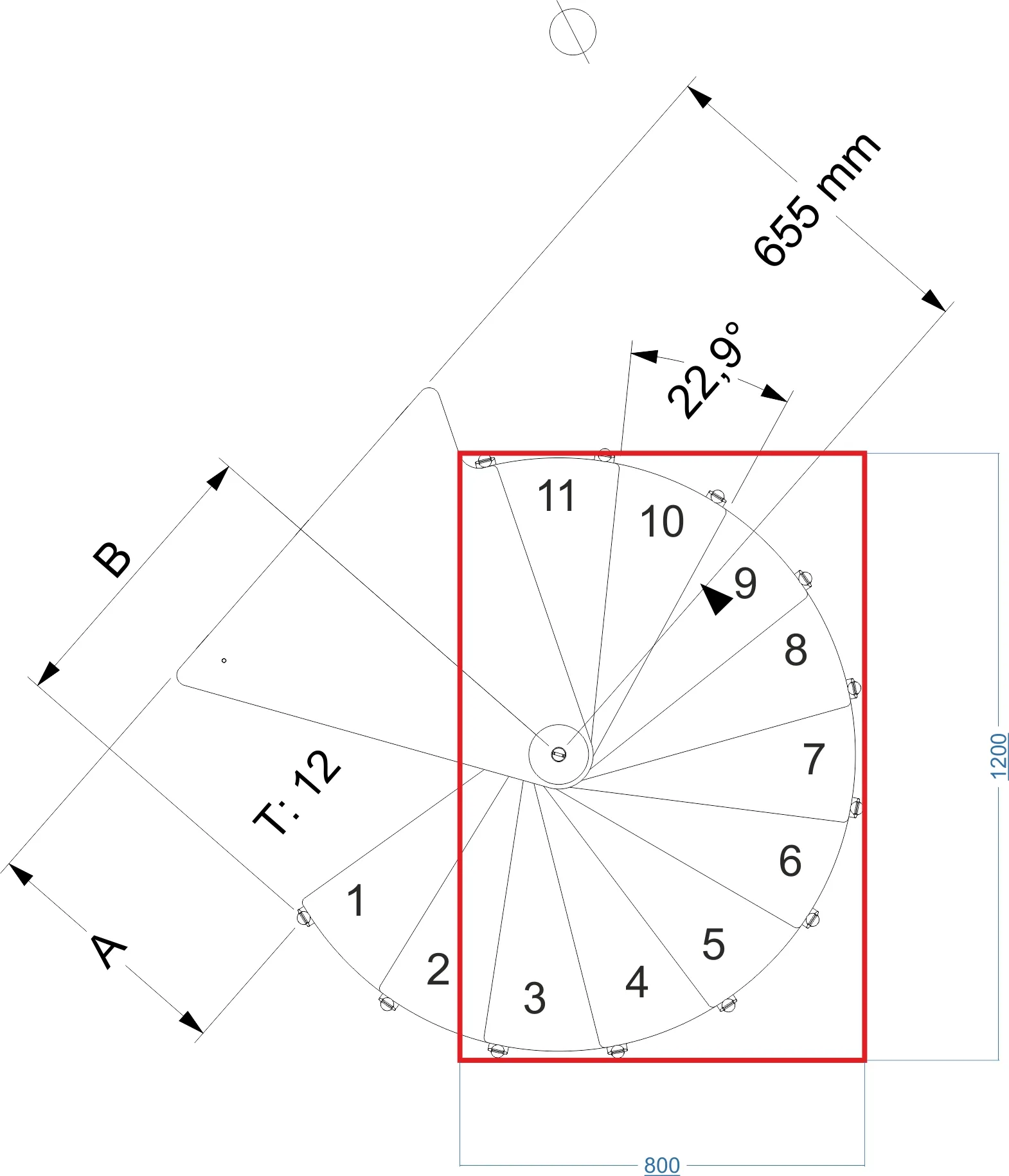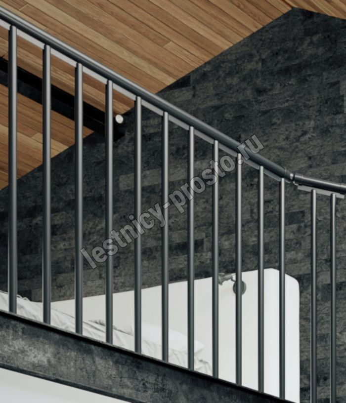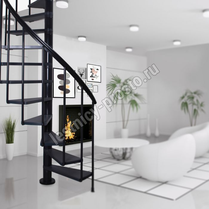 Ступени лестницы изготовлены из бука по технологии MULTIPLEX и покрыты износостойким защитным лаком. Лестница монтируется как по часовой стрелке, так и против. Возможен монтаж в круглый или квадратный проём. Ограждение: стальные трубки, Ø25 мм RAL 7016. Поручень: гибкий цельный ПВХ-поручень Ø40 мм антрацитового цвета. Конструкция и балюстрада окрашены порошковым способом в антрацитовый цвет (RAL 7016).