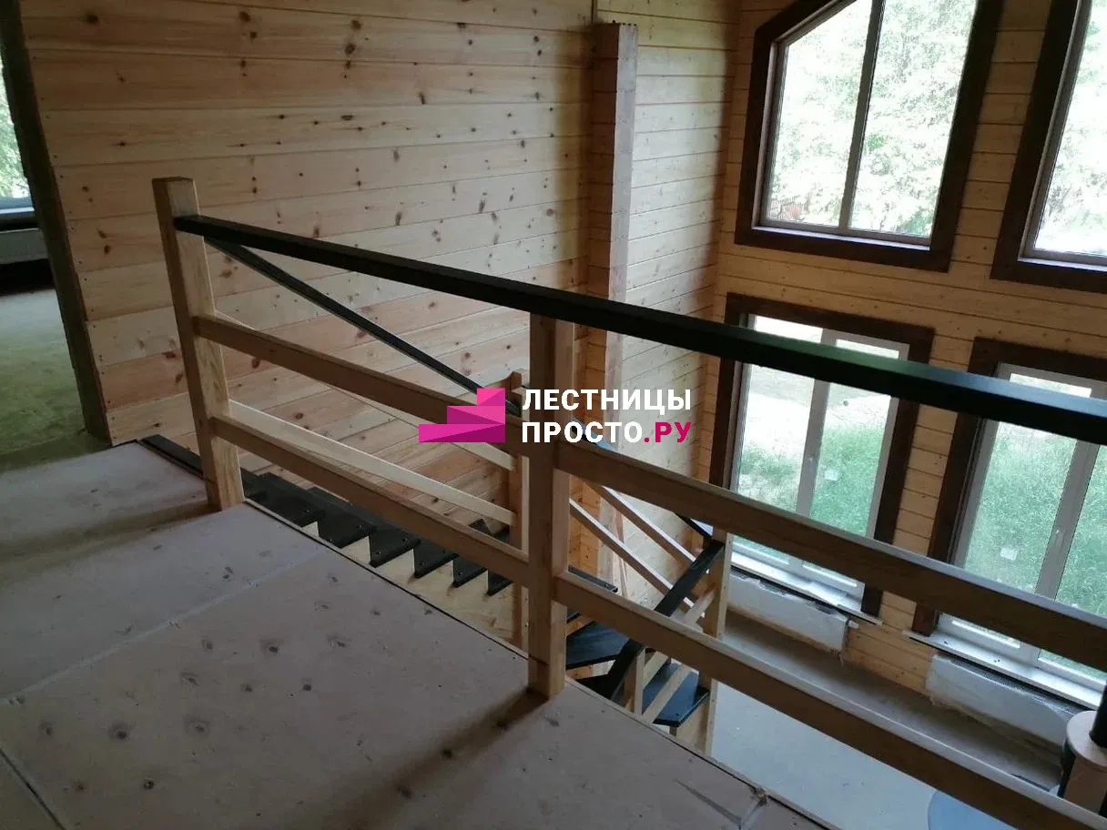 Деревянная лестница выполнена на заказ из сосны паркетной склейки.