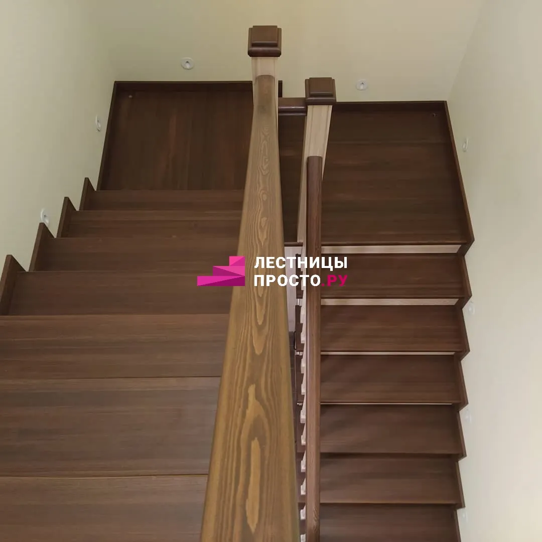 Подступенники, фальш-косоуры и сапожки (пристенной плинтус) выполнены из МДФ.